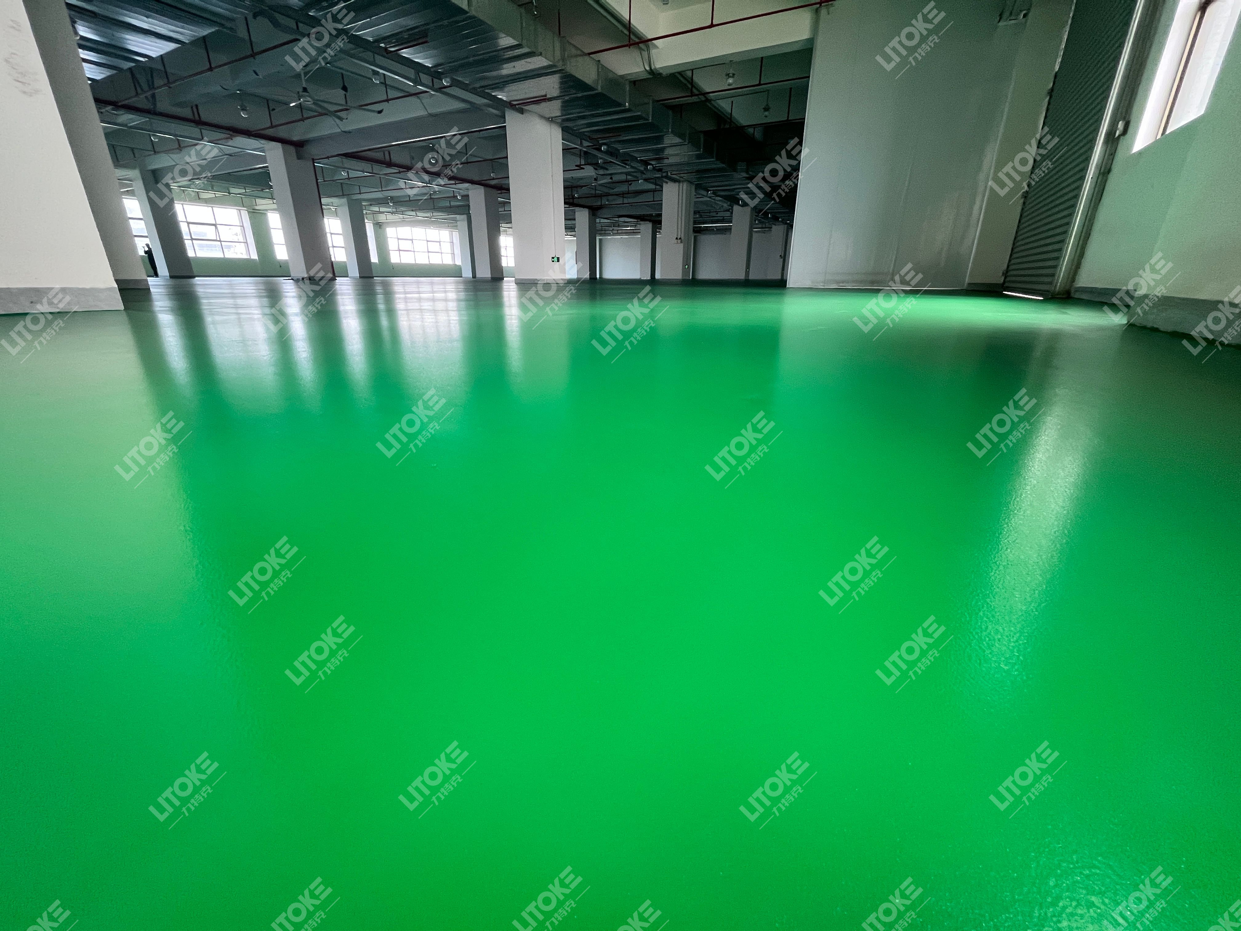 聚氨酯超耐磨地坪適用于舊廠房翻新,步驟包括基層處理、底涂、中涂層、面層及罩面,提升耐磨、抗壓和清潔性能。